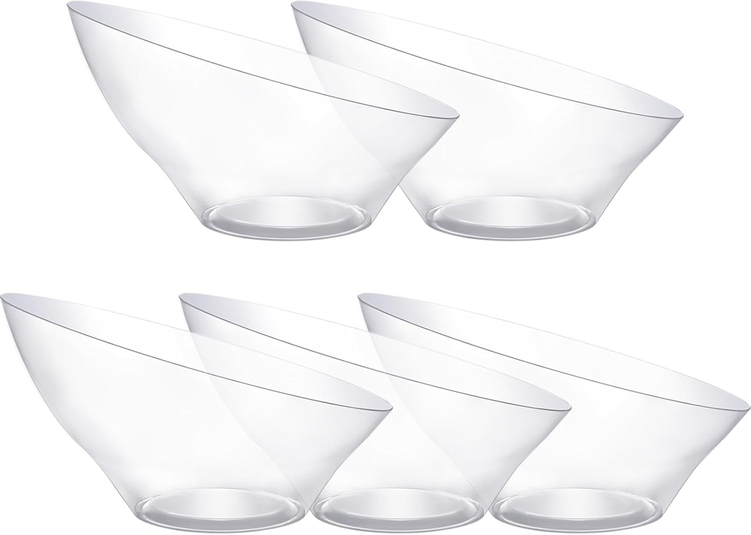 Cloth tablecloths add a great touch. Nice dinnerware and serving trays along with something elegant to drink from. In my opinion, the clear plastic stem cups are fine. No breakage this way.